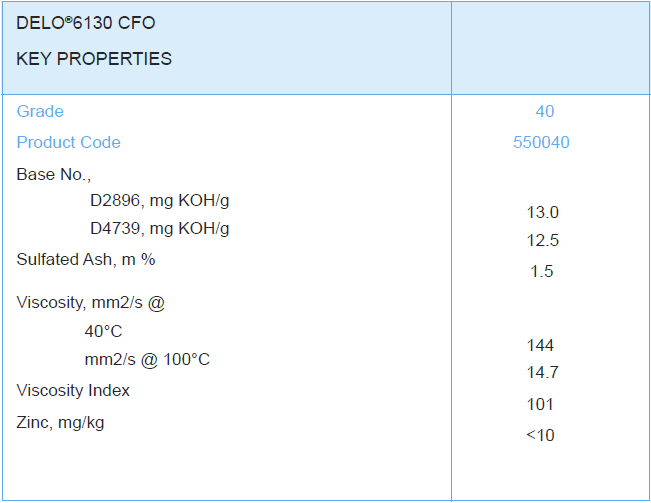 Delo® 6130 CFO is a premium performance, 13 Base Number, “zinc-free”,LMOA Generation 5 diesel engine oil.